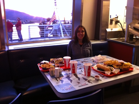 The food has actually been pretty good on the ferries here in Alaska. Can you believe Michel ate all that food!!