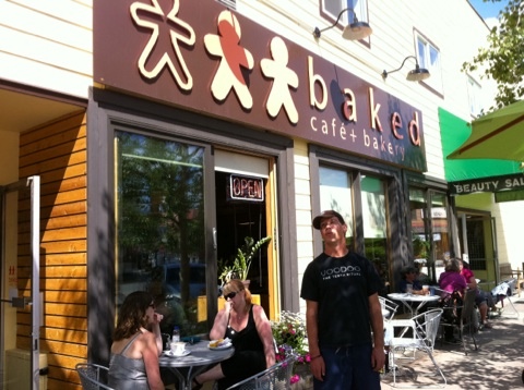First stop: Baked Cafe, a California-y place with blueberry “rhubarb” muffins and smoothies with “hemp” flower, etc.
