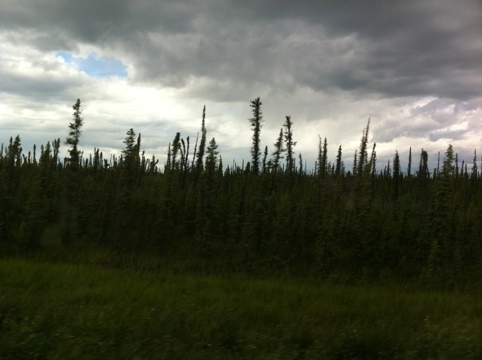 We got on the road and then stopped for Breaky. We are planning to get close to Anchorage tonight. I have a flight to LA tomorrow. More sad forest today.
